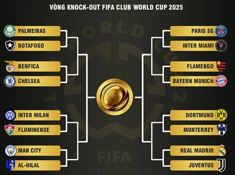 Sau khi vòng bảng kết thúc, sơ đồ thi đấu FIFA Club World Cup 2025 bước sang vòng loại trực tiếp